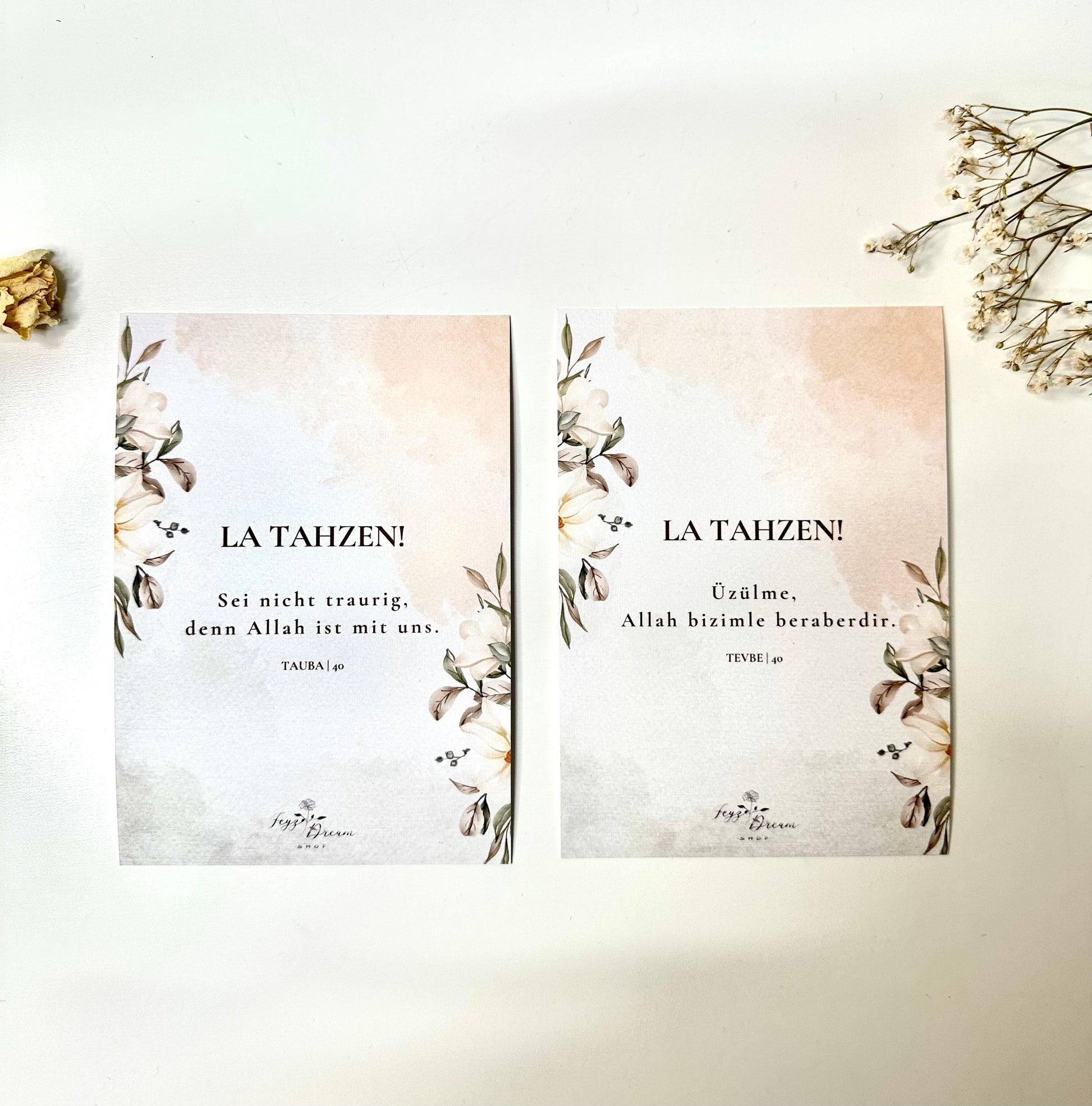 Discover our stylish mini poster in a handy A6 format - a perfect gift or an inspiring addition to your desk, fridge or any other corner of your home. Each poster is printed in high quality and features a meaningful verse or saying that will motivate you in your everyday life and remind you of Allah.