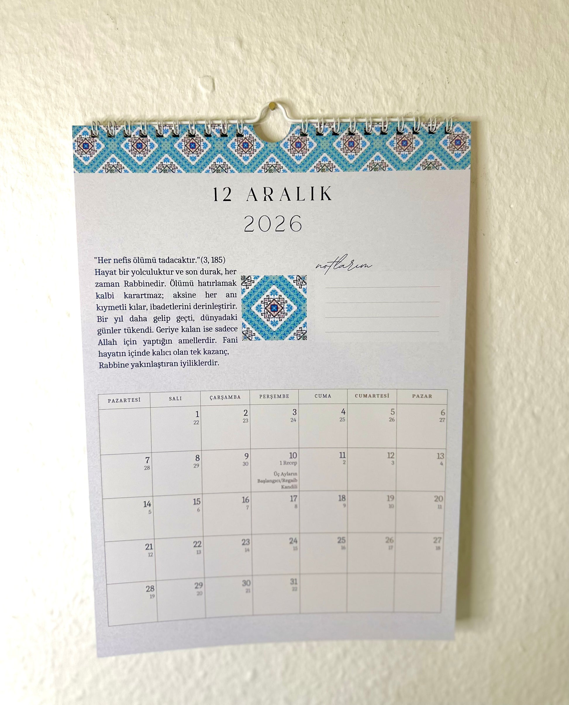 Dieser liebevoll gestaltete islamische Wandkalender begleitet dich durch das Jahr 2026 – mit inspirierenden Versen aus dem Qur’an, den Namen Allahs und wunderschönen floralen Mustern, die jeden Monat zu einem besonderen Erlebnis machen. 🌿